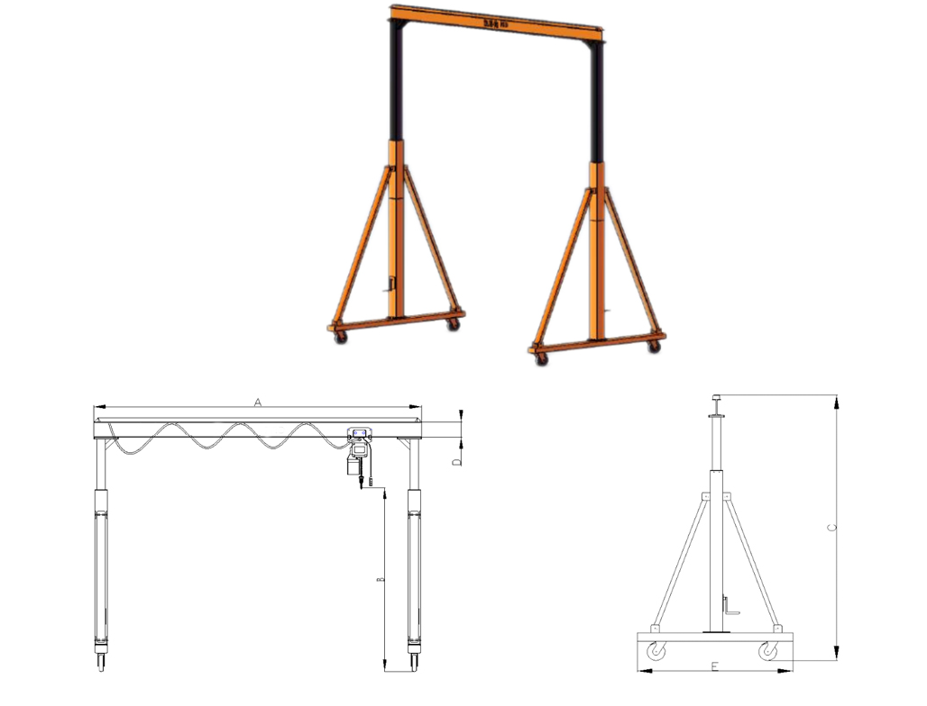 無軌電動行走龍門吊是無軌電動運行、可隨意轉向、負重時助力行走,可選配驅動裝置帶離合器,電動、手動可轉換。根據您的要求,可根據場地及使用情況選配PT系列龍門吊各種型式立腿。